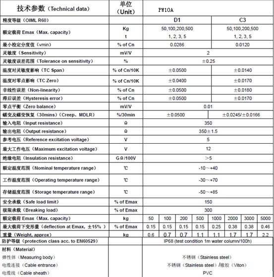PW10AC3/150KG傳感器重量的檢測速率為每秒100次。盡管高灌裝速率和非常高的動態(tài)環(huán)境,其要求系統(tǒng)的灌裝誤差要小于100g.工廠每天開工8個小時,然后經(jīng)過60°C熱肥皂水清洗。因此要求PW10AC3/150KG稱量傳感器防水和防銹蝕。