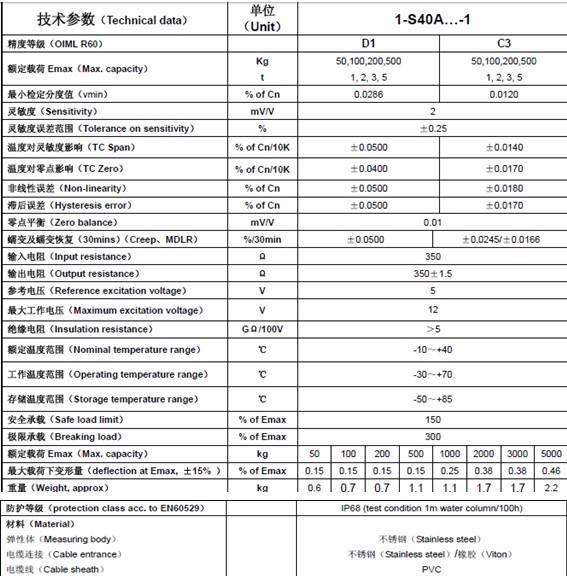 S40AC3/3T稱重傳感器型號(hào):