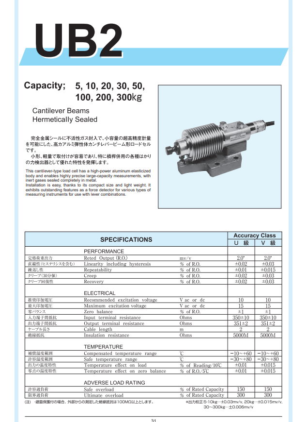 UB2-300kg稱重傳感器Yamato技術(shù)參數(shù):Gxu廣州南創(chuàng)電子科技有限公司