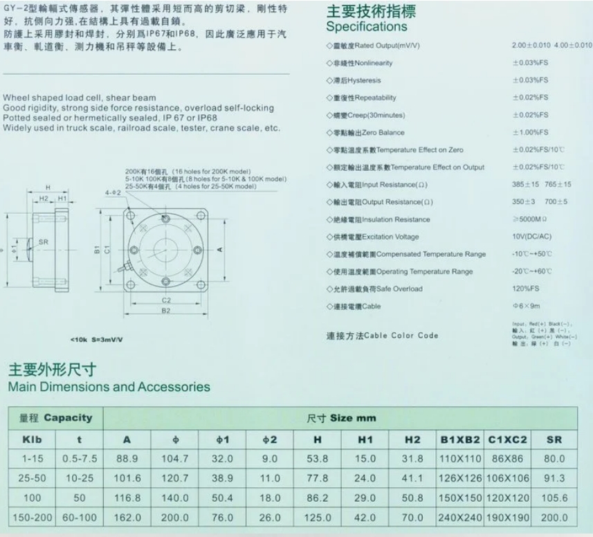 GY-2型輪輻式傳感器,其彈性體采用短而高的剪切梁,剛性特好,抗側(cè)向力強(qiáng),在結(jié)構(gòu)上具有過載自鎖。防護(hù)上采用膠封和焊封,分別達(dá)到了IP67和IP68,因此廣泛應(yīng)用于汽車衡、扎道衡、測力機(jī)和吊秤等設(shè)備上。KPd廣州南創(chuàng)電子科技有限公司