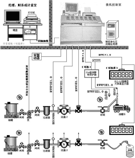 系統(tǒng)由主機(jī)(工業(yè)控制計(jì)算機(jī))、下位機(jī)(定值控制儀)、流量計(jì)、溫度變送器、輸料泵、電液(磁)閥和現(xiàn)場隔爆型大屏幕顯示器等主要部分構(gòu)成,其工作主要包括進(jìn)出物料的準(zhǔn)確定量發(fā)放、灌裝和各類物料的進(jìn)出數(shù)據(jù)管理,日、月、年進(jìn)出物料的歷史數(shù)據(jù)查詢,發(fā)料和進(jìn)料量各批次以及總量報(bào)表查詢,統(tǒng)計(jì)和打印。如果配備開票系統(tǒng),在營業(yè)室開票后,開票信息直接通過局域網(wǎng)進(jìn)入控制室計(jì)算機(jī),可以隨時(shí)進(jìn)行發(fā)放、灌裝,所有灌裝數(shù)據(jù)可通過進(jìn)入廠級計(jì)算機(jī)管理網(wǎng)絡(luò),實(shí)現(xiàn)動(dòng)態(tài)管理。hbk廣州南創(chuàng)電子科技有限公司