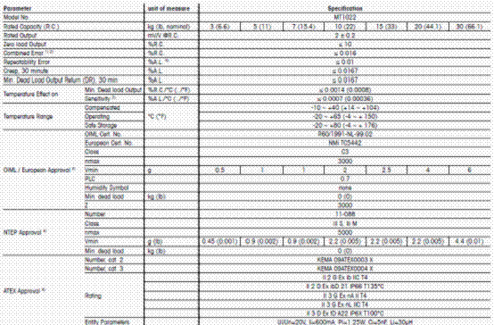 梅特勒托利多Mettler Toledo MT1022稱重傳感器技術(shù)指標(biāo):PmC廣州南創(chuàng)電子科技有限公司