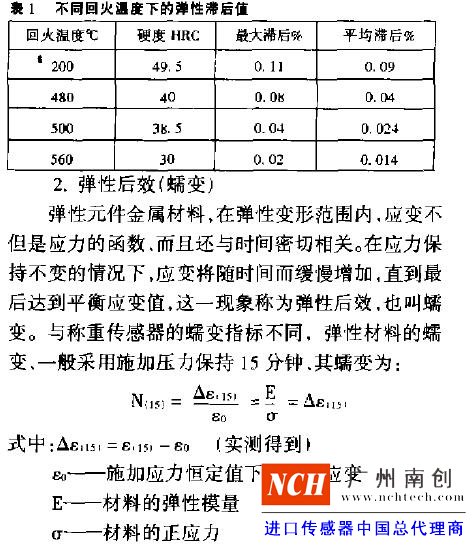 感器工作性能穩(wěn)定,還要求金屬材料抗微塑變形能力強,即具有較高的彈性極限,因為彈性極限愈高,滯彈性效應(yīng)出現(xiàn)的愈少。稱重傳感器彈性元件的質(zhì)量,很大程度上取決于彈性元件的制造工藝,特別是熱處理工藝。這些工藝直接影響到彈性元件的彈性和應(yīng)力,尤其是滯彈性效應(yīng)。所謂滯彈性,就是材料在彈性變形范圍內(nèi),同時伴有微塑變形,使應(yīng)力和應(yīng)變之間不遵循虎克定律,而產(chǎn)生非線性誤差,這種現(xiàn)象稱為材料的滯彈性。其表現(xiàn)形式較多,主要有:彈性滯后、彈性后效(蠕變)、應(yīng)力松弛等。