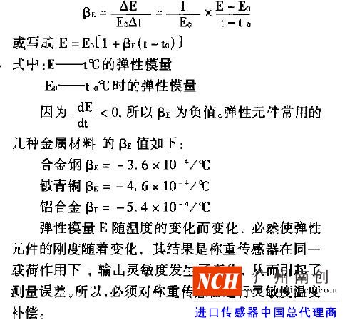 1.彈性模量E的溫度系數(shù)當(dāng)環(huán)境溫度升高時,彈性元件金屬材料原子的熱運動加劇,結(jié)合力減弱,所以彈性模量E降低。通常用彈性模量溫度系數(shù)BE來表示彈性模量E隨溫度t變化的情況。當(dāng)溫度t變化I'E時,彈性模量E的相對變化值即為陸用下式表示:CHZ廣州南創(chuàng)電子科技有限公司