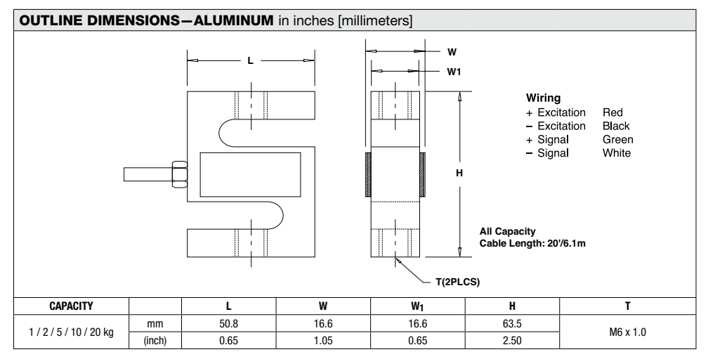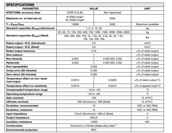 皮帶秤S型稱重傳感器型號參考: