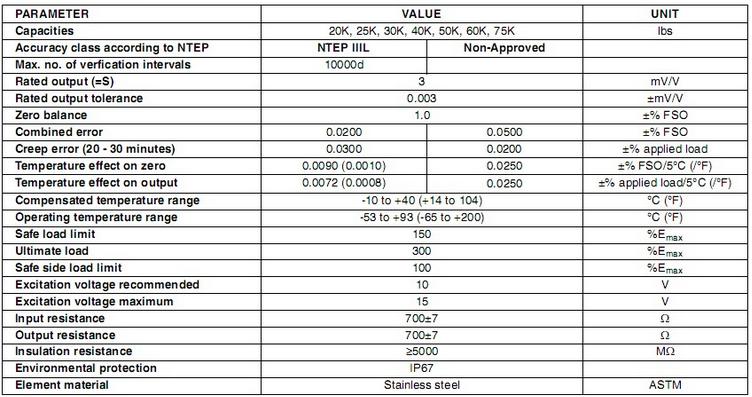 33554:  65083S-4k-5100 4000lb 20ft SENTRS 2mV/V 350 OHM NTEP Class III 5m  HS WS IP67K3s廣州南創(chuàng)電子科技有限公司
