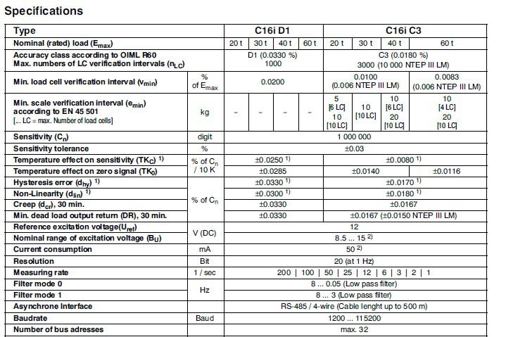 德國HBM稱重傳感器 C16iC3/60T主要特性: