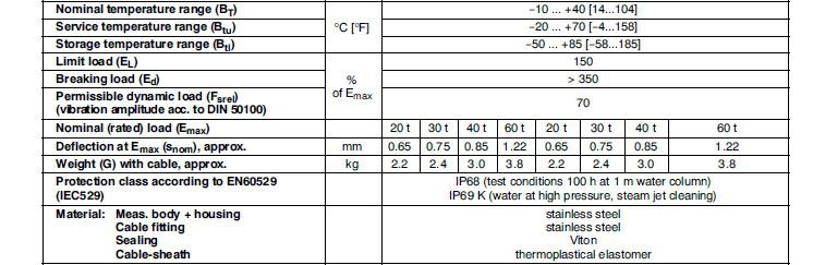 德國HBM C16iC3/60T稱重傳感器所有型號: