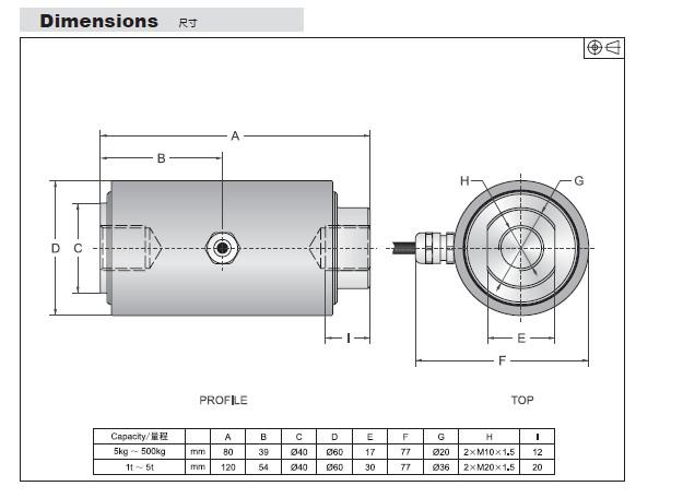 美國(guó)傳力CR-5T稱重傳感器選型圖: