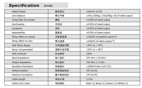 Transcell CR-5T稱重傳感器主要特性: