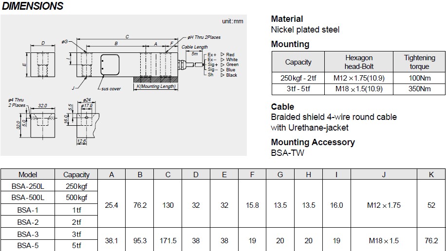 韓國(guó)CAS BSA-250L傳感器參數(shù):