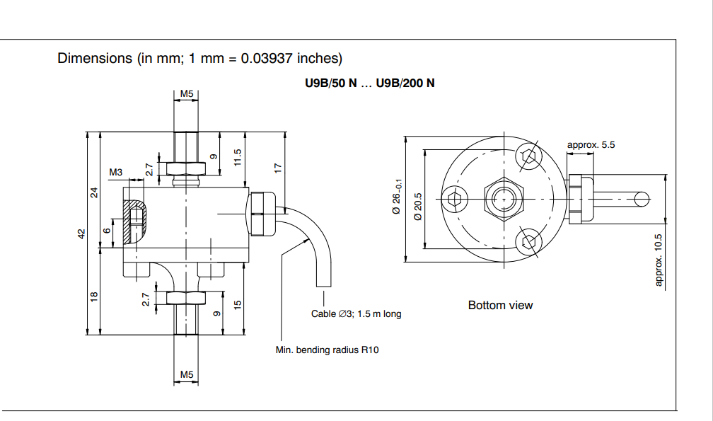 HBM U9B力傳感器尺寸圖:RGW廣州南創(chuàng)電子科技有限公司
