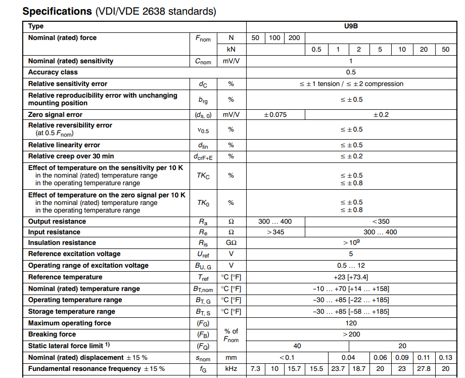 HBM U9B力傳感器技術(shù)參數(shù)圖:RGW廣州南創(chuàng)電子科技有限公司