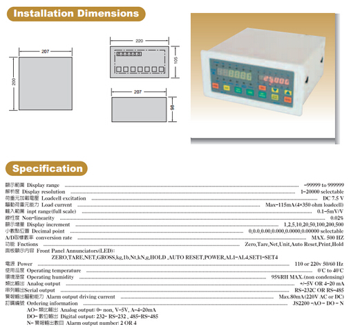 臺灣JIHSENSE JS-2200稱重顯示控制器規(guī)格圖:F97廣州南創(chuàng)電子科技有限公司