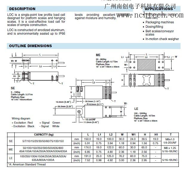 規(guī)格型號  LOC-50kgME LOC-100kgME LOC-150kgME WfV廣州南創(chuàng)電子科技有限公司