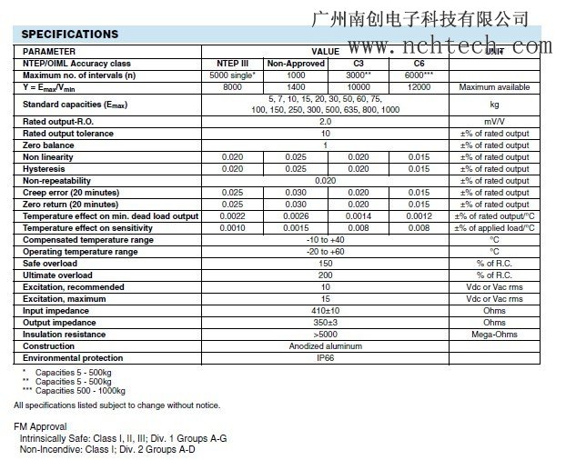 5KG-500KG獲得NTEP Class III 5000S認(rèn)證WfV廣州南創(chuàng)電子科技有限公司