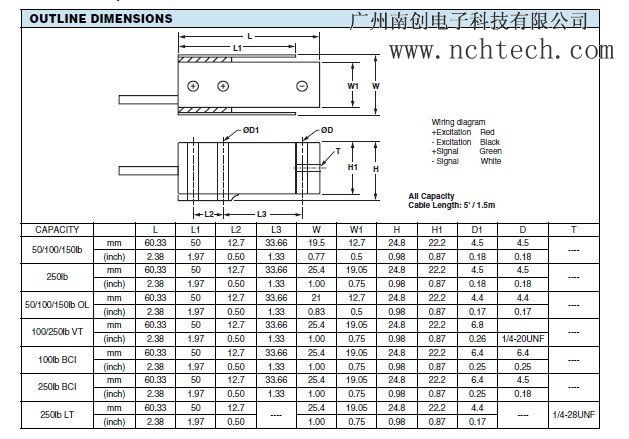 額定載荷Standard capacities (Emax) 50,100,150,250 lbsM3W廣州南創(chuàng)電子科技有限公司