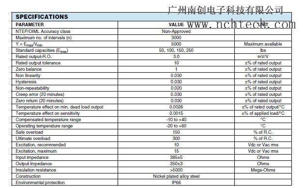 美國celtron稱重傳感器MBB-250kg 技術參數(shù):M3W廣州南創(chuàng)電子科技有限公司