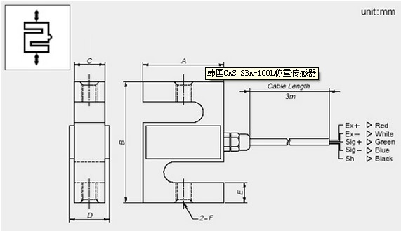 韓國(guó)CAS SBA-100L傳感器尺寸圖: