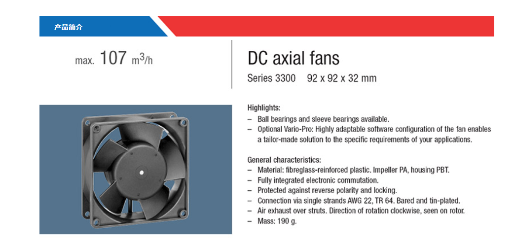 ebmpapst風(fēng)扇3314 24DC 2.4W可通過外置電路的脈寬調(diào)制(PWM)或電壓調(diào)節(jié)來調(diào)節(jié)風(fēng)機(jī)轉(zhuǎn)速,VARIOFAN:通過內(nèi)置或外置的溫度傳感器,風(fēng)機(jī)的運(yùn)行可隨著溫度的變化而變化。 ZPh廣州南創(chuàng)電子科技有限公司