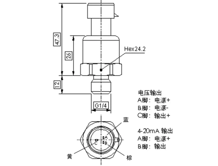 杰佛倫油壓壓傳感器的尺寸圖:3RW廣州南創(chuàng)電子科技有限公司