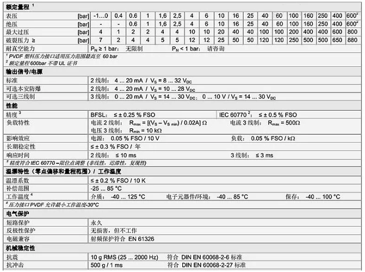杰佛倫壓力傳感器的技術參數(shù)圖:3RW廣州南創(chuàng)電子科技有限公司