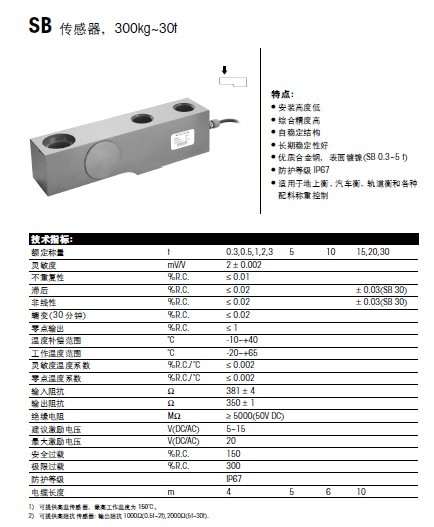瑞士METTLER TOLEDO SB-1T稱重傳感器技術(shù)參數(shù)圖:86f廣州南創(chuàng)電子科技有限公司