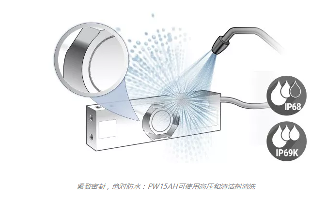 •   緊致密封的PW15AH稱重傳感器可用于更加苛刻的工業(yè)區(qū)域,如高壓清洗等。防護等級為IP68/69K,永久防潮
