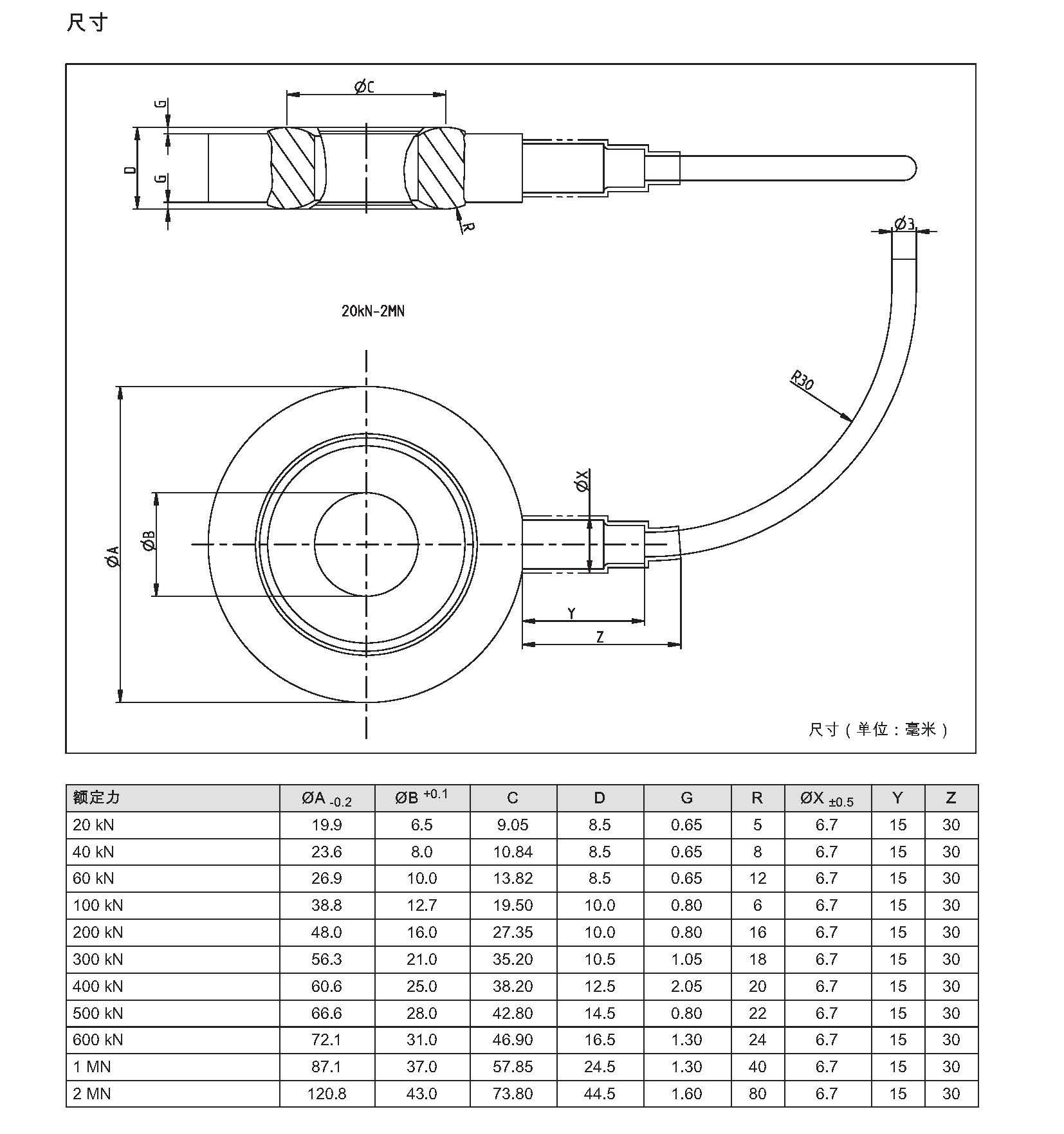 螺紋規(guī)格從M6(20 kN)到M42(2 MN)Zl1廣州南創(chuàng)電子科技有限公司