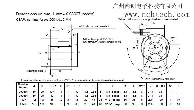 規(guī)格:C6A力傳感器/200kn/500kn0Es廣州南創(chuàng)電子科技有限公司