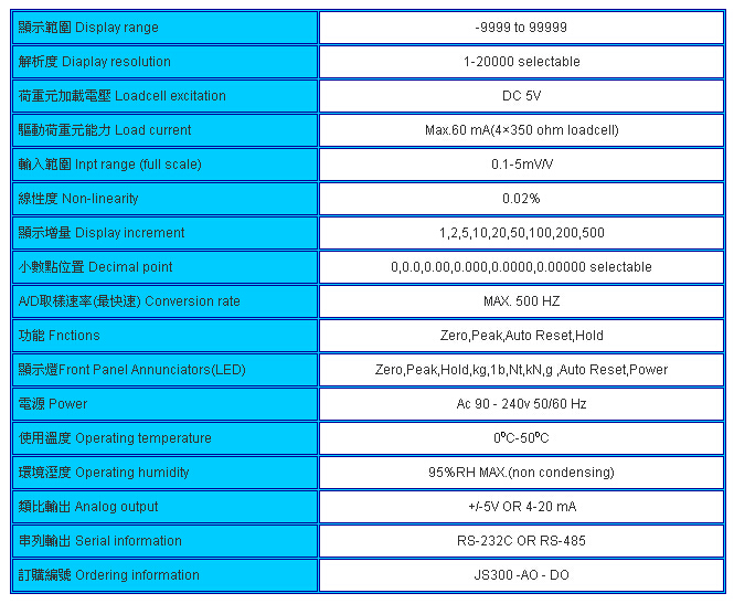 臺灣JIHSENSE JS-300稱重顯示控制器產(chǎn)品介紹:AA1廣州南創(chuàng)電子科技有限公司