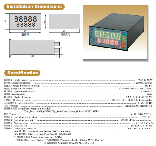 臺灣JIHSENSE JS-300稱重顯示控制器規(guī)格圖:AA1廣州南創(chuàng)電子科技有限公司