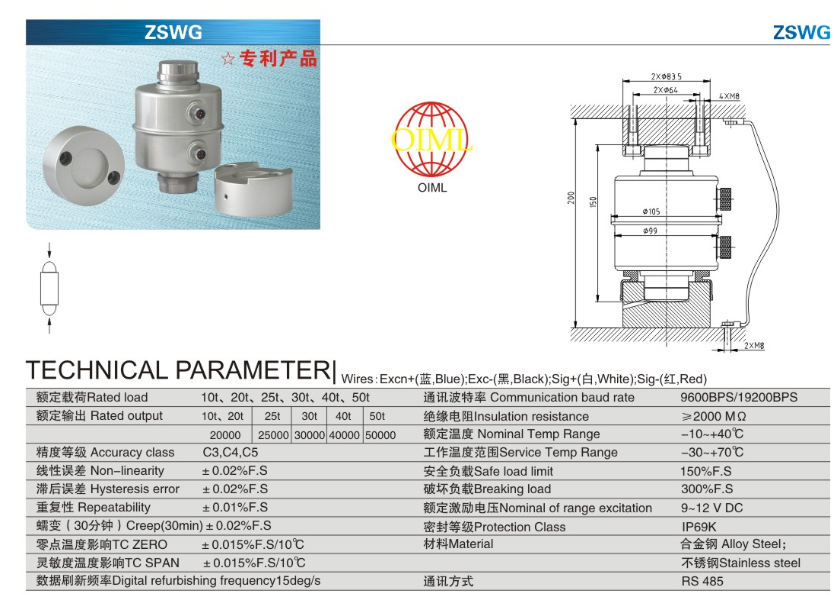 wVK廣州南創(chuàng)電子科技有限公司寧波柯力ZSW-D型FB-40t稱重傳感器特點(diǎn):wVK廣州南創(chuàng)電子科技有限公司柱式稱重傳感器