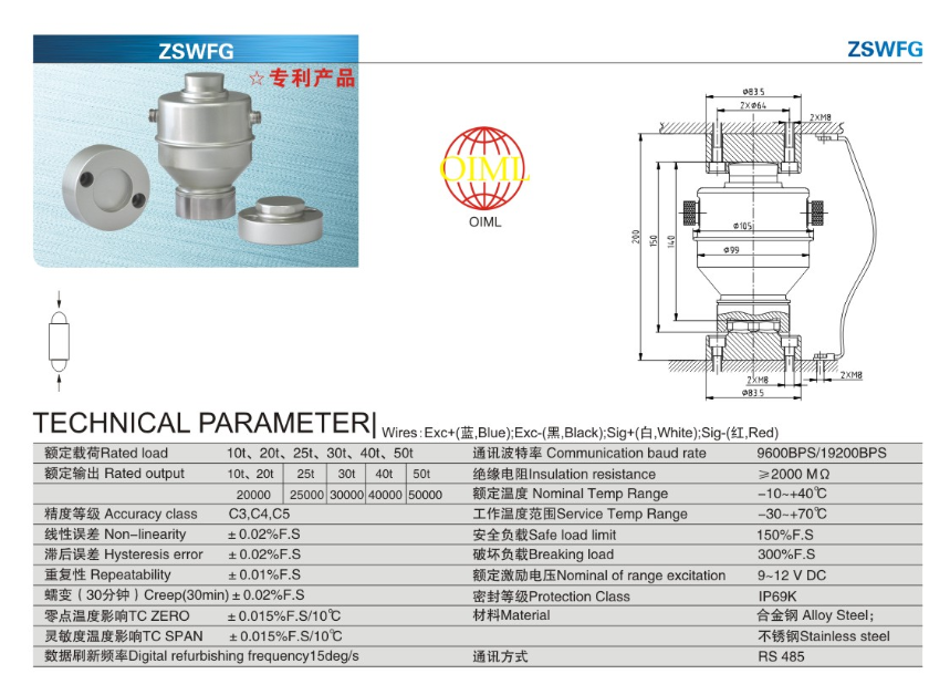寧波柯力稱重傳感器ZSWFG-(10t/20t/25t/30t/40t/50t)