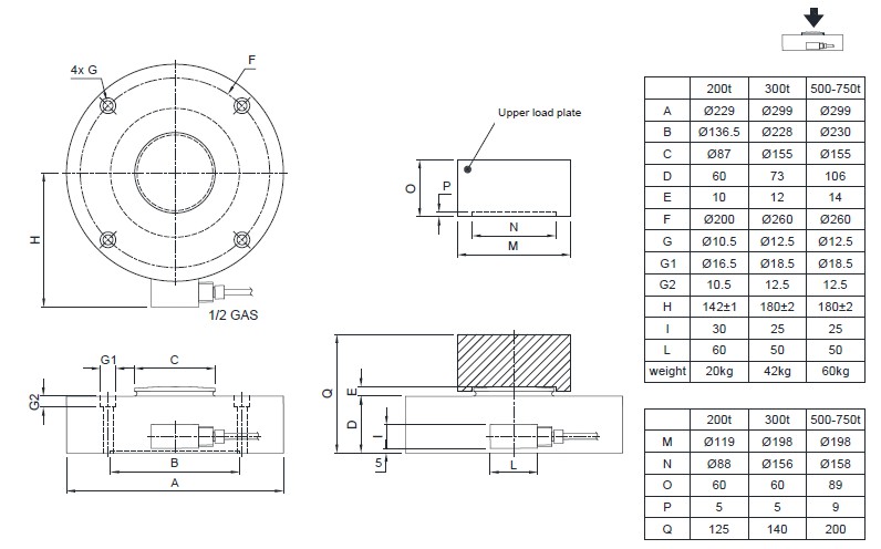 最大量程負(fù)載(E max):50kg、100kg、200kg、300kg、500kg、1000kg、2500kg、5000 kg