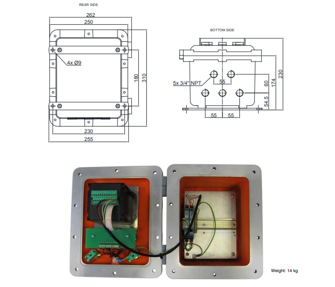 防爆箱,已通過(guò)ATEX II 2(1)GD認(rèn)證,配有耐熱透明鋼化玻璃窗和5個(gè)外部按鈕,其功能與W200鍵盤(pán)相同Nvu廣州南創(chuàng)電子科技有限公司