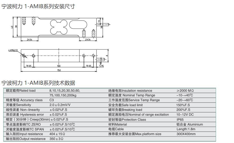 寧波柯力稱重傳感器AMIB-200kg產(chǎn)品技術(shù)參數(shù)及尺寸圖:TEn廣州南創(chuàng)電子科技有限公司