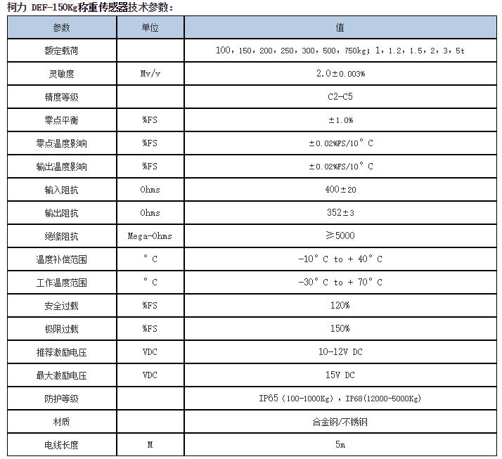 寧波柯力稱重傳感器DEF-A-(50kg~7.5t)