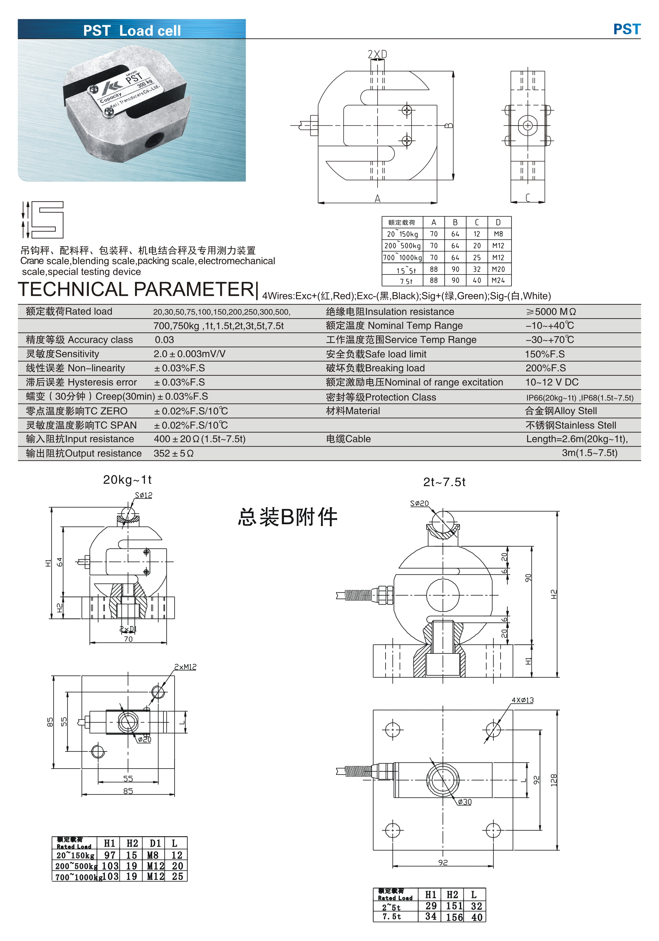 寧波柯力稱重傳感器PST-5t產(chǎn)品技術(shù)參數(shù)及尺寸圖:0J3廣州南創(chuàng)電子科技有限公司