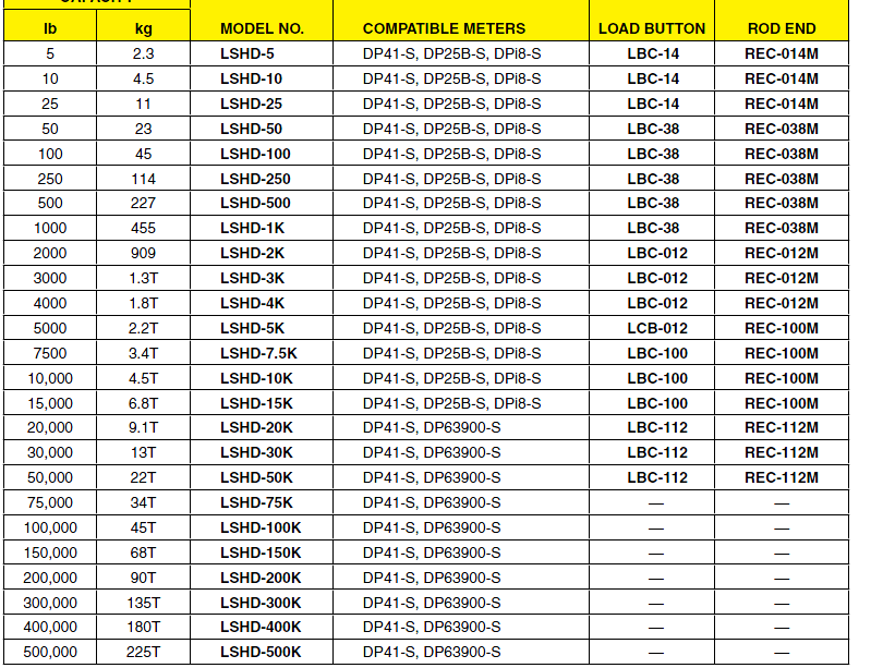 lb      kg     MODEL NO.     COMPATIBLE METERS     LOAD BUTTON      ROD ENDNJg廣州南創(chuàng)電子科技有限公司