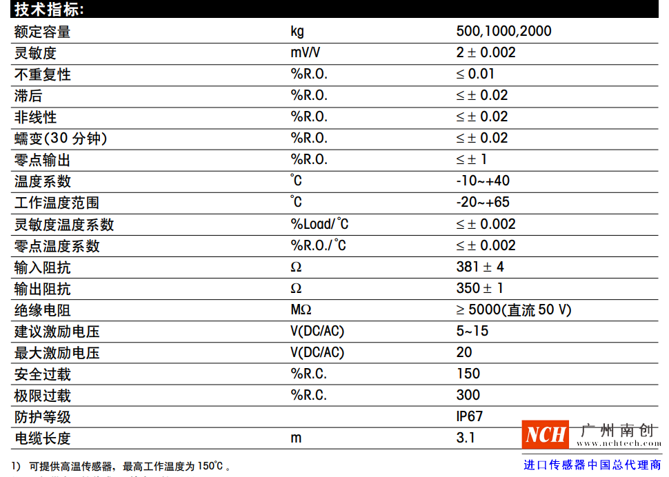托利多SBC稱重傳感器技術(shù)指標:jSP廣州南創(chuàng)電子科技有限公司