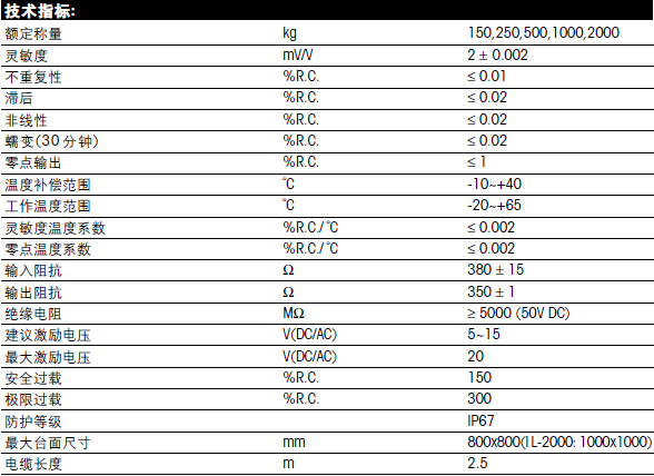 梅特勒托利多IL系列稱重傳感器所有量程如下:yJZ廣州南創(chuàng)電子科技有限公司