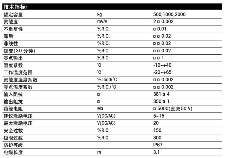 METTLER TOLEDO稱(chēng)重傳感器SBC-2000kg技術(shù)參數(shù):cRh廣州南創(chuàng)電子科技有限公司