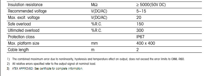 梅特勒托利多MT1041傳感器系列型號(hào)技術(shù)參數(shù)圖如下(Technology parameters):