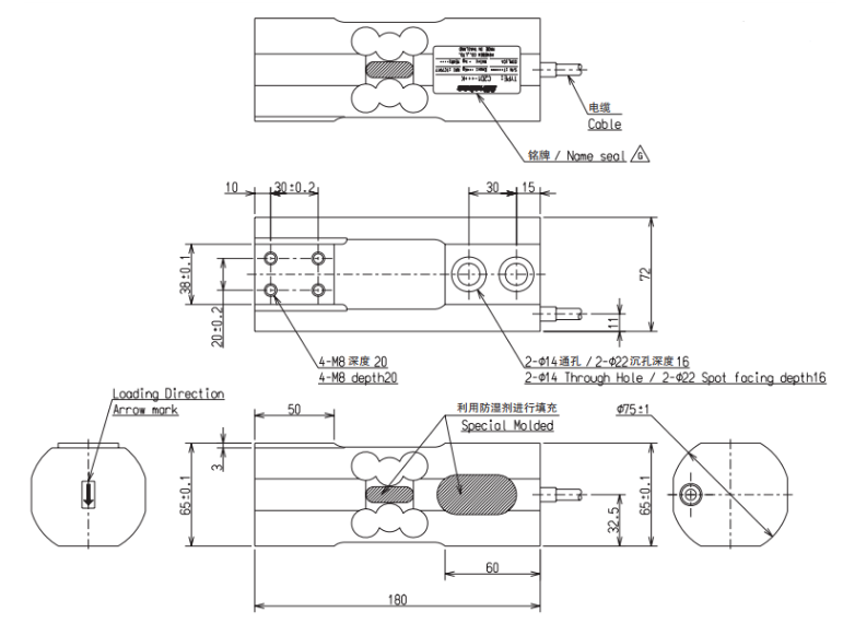C2D1-800K稱重傳感器Minebea尺寸圖:iLe廣州南創(chuàng)電子科技有限公司