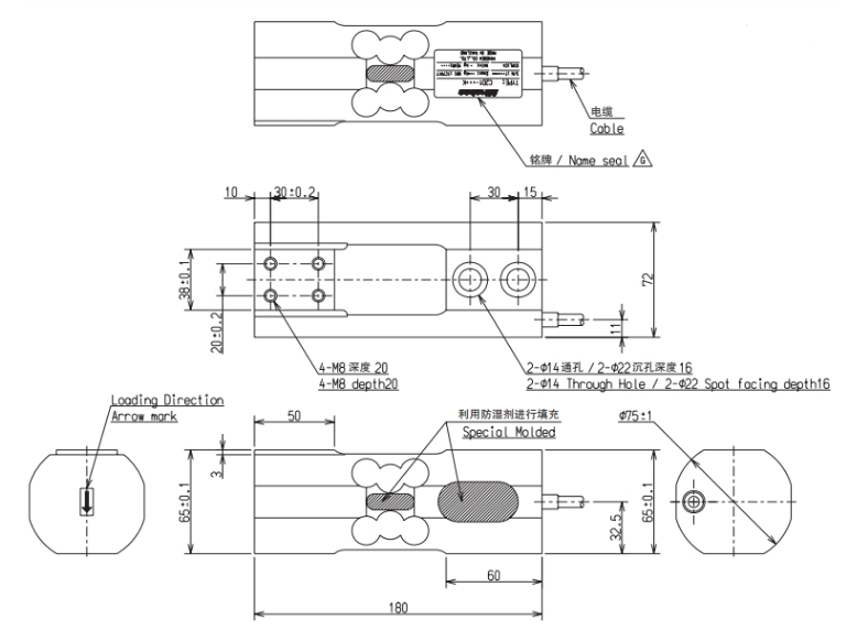 U2D1-100K稱重傳感器Minebea尺寸圖:fdn廣州南創(chuàng)電子科技有限公司