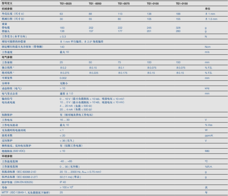 德國NovotechnikTE1-0025 TE1-0050系列直線位移傳感器產(chǎn)品特點:8NW廣州南創(chuàng)電子科技有限公司