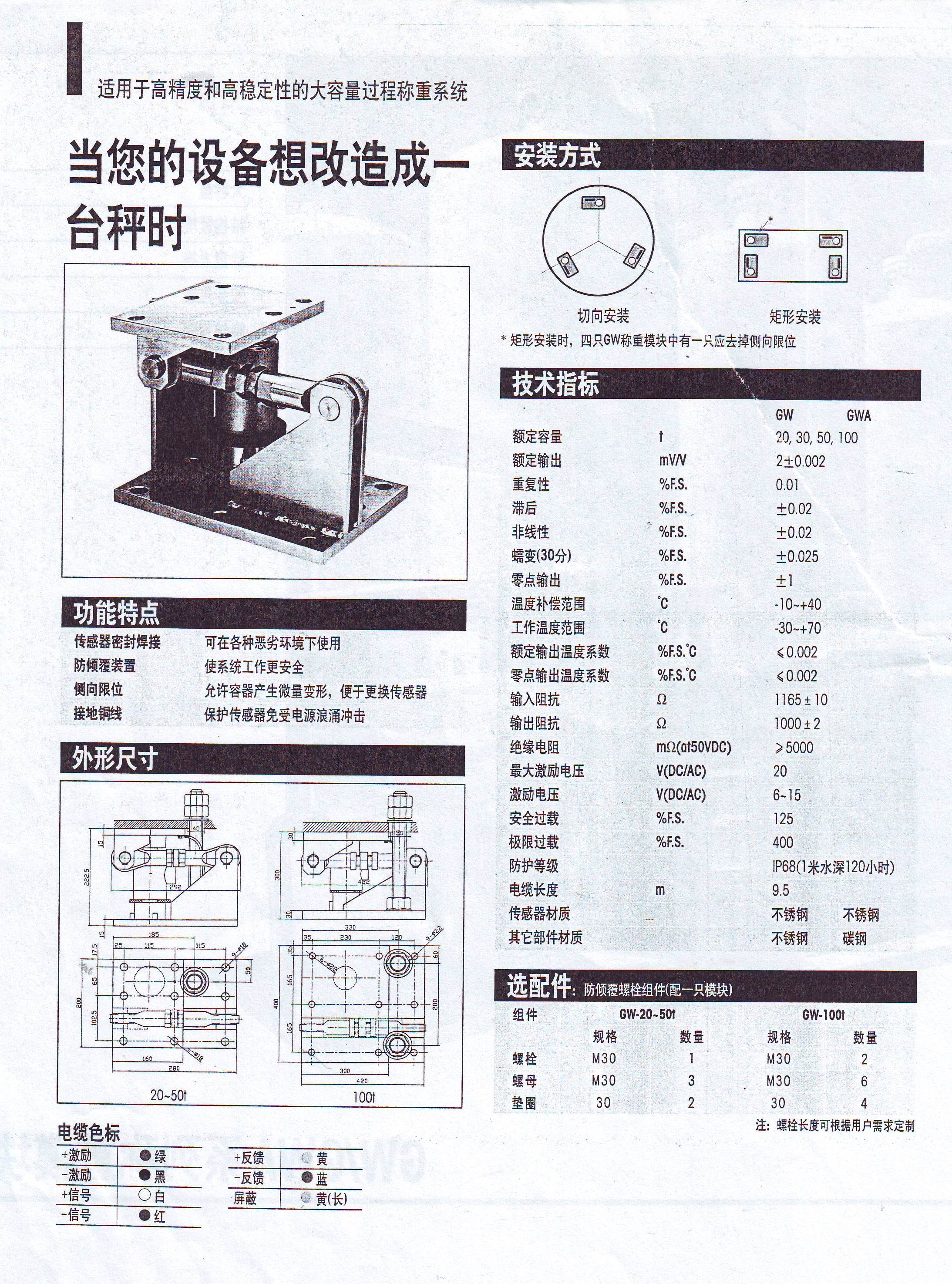 GWA-250 GWA稱重模塊,容量250t,,20M電纜oHj廣州南創(chuàng)電子科技有限公司