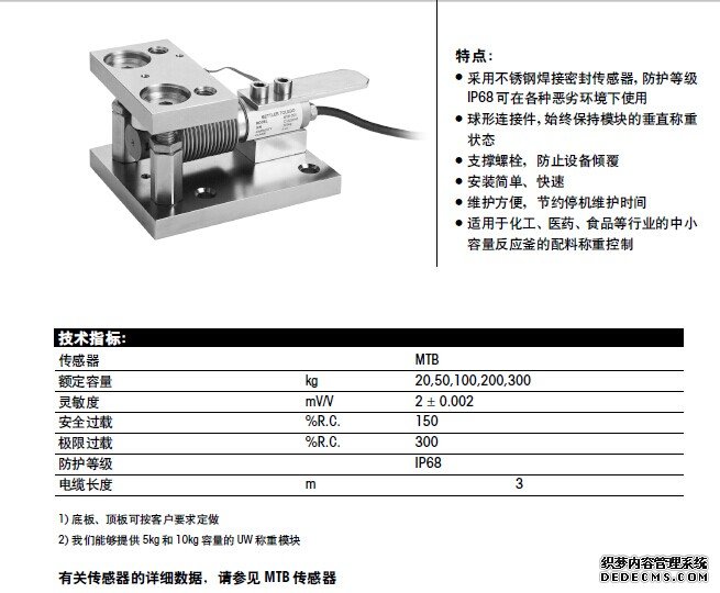 UW-20kg稱重模塊采用精美不銹鋼焊接密封梅特勒托利多MTB系列