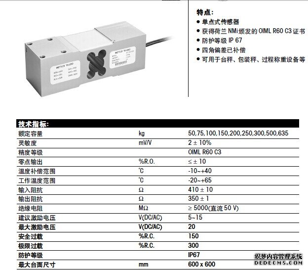 Mettler Toledo MT1260單點(diǎn)式稱重傳感器其它相關(guān)產(chǎn)品信息:7Um廣州南創(chuàng)電子科技有限公司